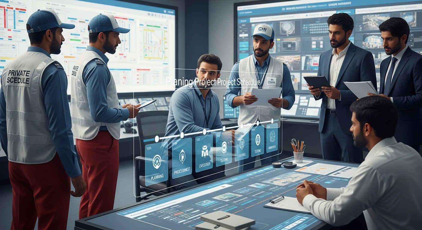3. المراحل الزمنية النموذجية لمشروع أمني (Example Timeline Phases)