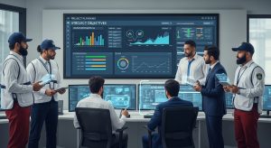 • تحديد الأهداف النهائية (Project Goals): تحديد ما سيبدو عليه النجاح. (مثال: تركيب نظام مراقبة متكامل يعمل بكامل طاقته في ثلاثة مبانٍ رئيسية).